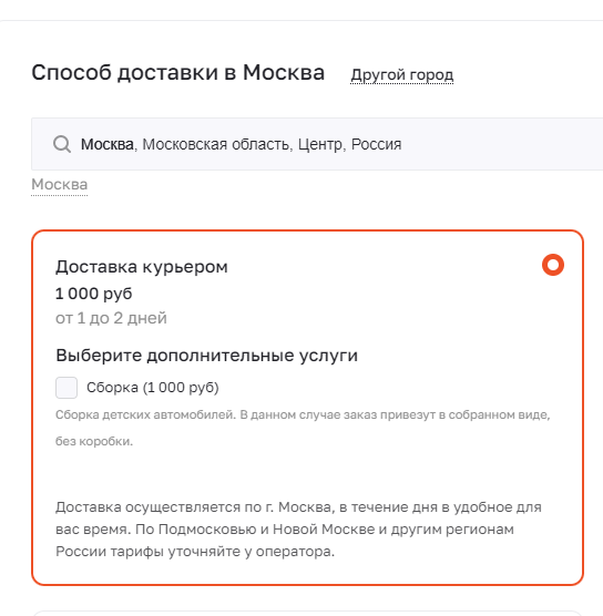 2. В форме «Доставка» выберите пункт «Доставка курьером»: