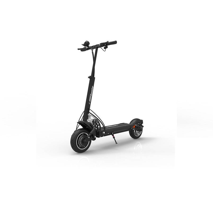 Полный привод. На каждой колесной ступице стоит электродвигатель мощностью 800 Вт. Когда работают оба мотора, электросамокат разгоняется до 65 км/ч и способен заехать на трассу с продольным уклоном 37%. При этом любой из двигателей можно отключить.
